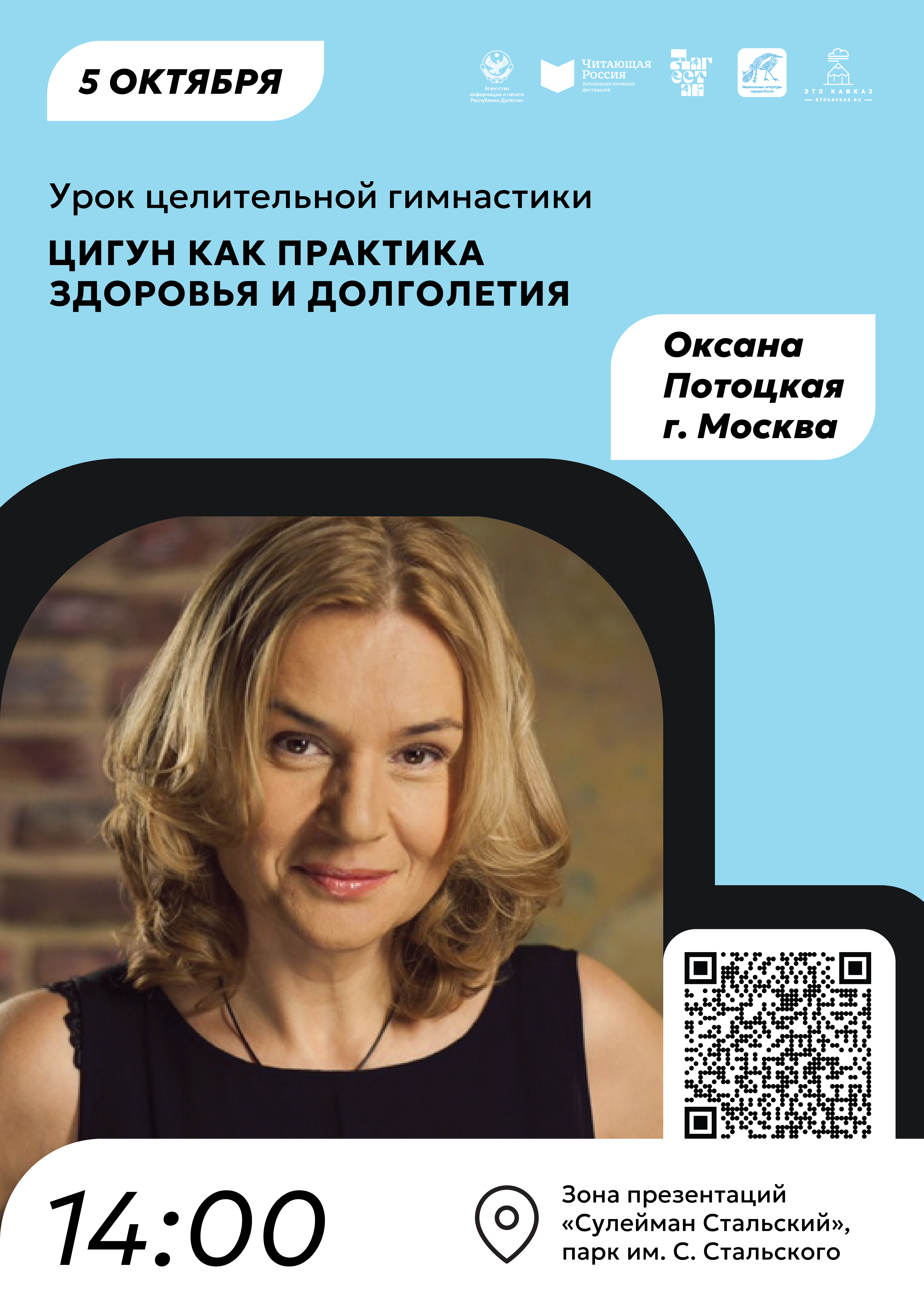 Урок целительной гимнастики от Оксаны Потоцкой (Москва) Зона презентаций «Сулейман Стальский», парк им. С. Стальского